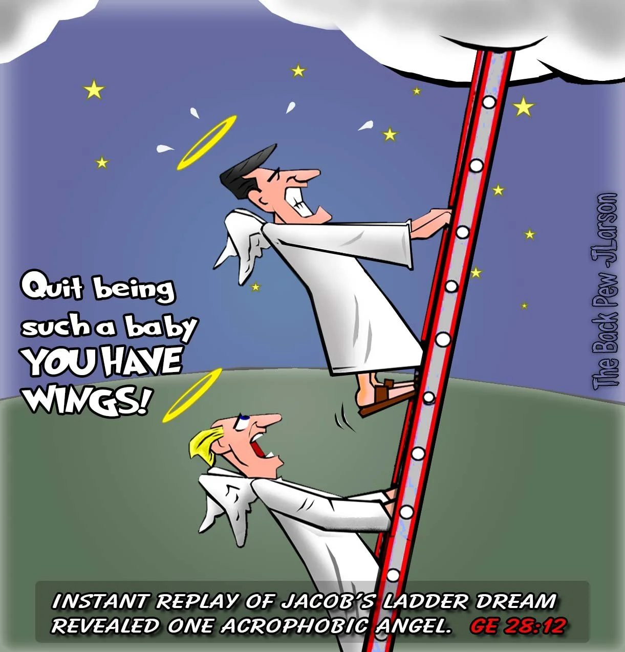 So, while out on the run, one night, Jacob dreams of angels going up and down on a ladder to Heaven. Of course, in the Back Pew, we are privileged to have an up-close view of that ladder zoomed in on...