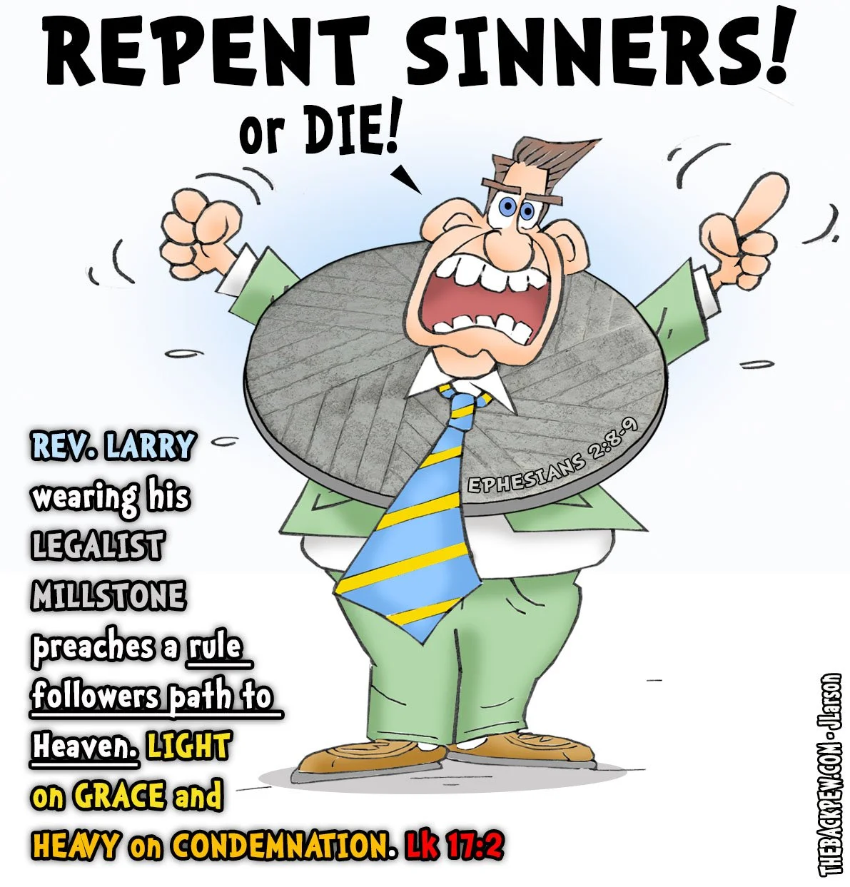 and finally in The Back Pew there must be a warning about those who preach a false gospel, and are found with a millstone around their necks.